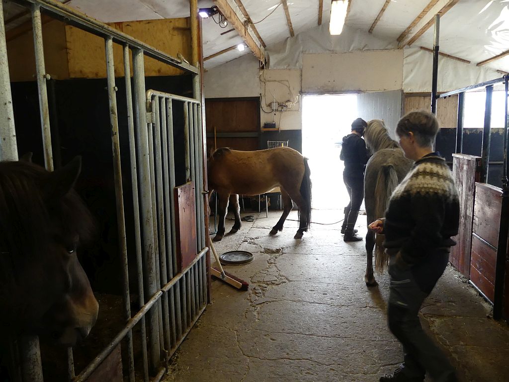 Island-Pferde haben eine ganz schönen Dickschädel und sind auch sehr … nennen wir es mal: Neugierig! Im Stall wurde dann ein wenig rangiert, da die einen Pferde raus wollten, die anderen rein, eines wollte an unserer Jacke kosten …