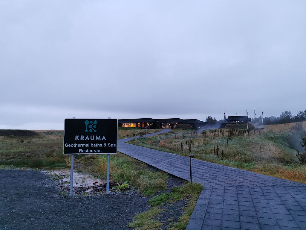 Also „Dip“ wie in „Eintauchen“. Wir mögen ja heiße Quellen und haben schon welche in Kanada, USA, Japan, Neuseeland und so weiter besucht. Island hat da auch die eine oder andere bekannte (z.B. die Blaue Lagune, kommt später im Urlaub dran) und heute würden wir im gleichen Tal wie die Pferde Farm eine recht neue besuchen: Das Krauma Hot Spring Bath.