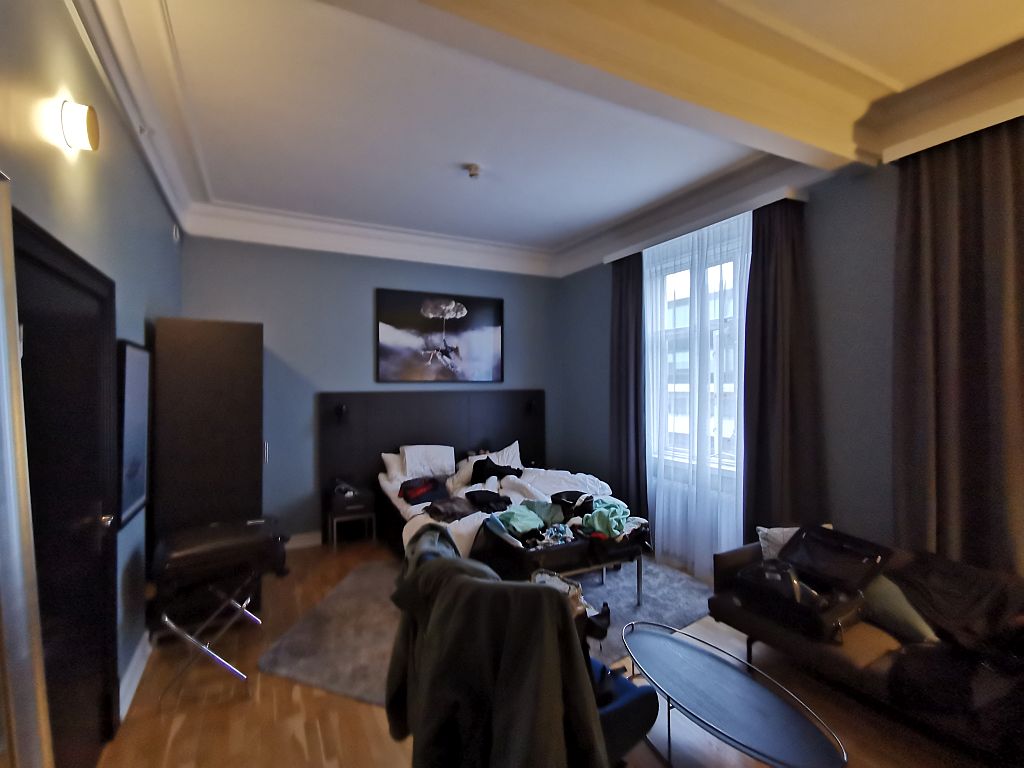 Unser Zimmer im Radisson Blu 1919 im Zentrum von Reykjavik hatten wir zu dem Zeitpunkt schon wieder in das übliche Chaos versetzt.