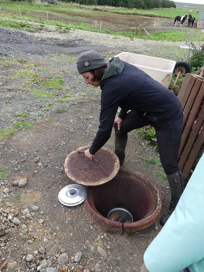 Hier liegt die Quelle für die Heizung der Farm und der Dampf wird auch zum Kochen verwendet, dazu aber später. Aktuell wurde in einem in den Boden eingelassenen Topf eine Blutwurst und eine Grützwurst gekocht.