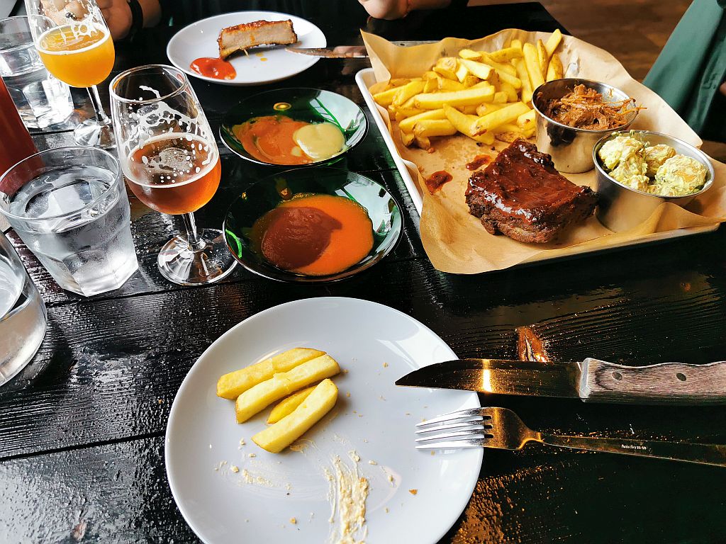 Wir haben uns lieber auf das Bier konzentriert und, alle Vorsicht aus dem Fenster werfend, auch gleich eine Portion Spareribs sowie eine Portion Pulled Pork gegönnt.