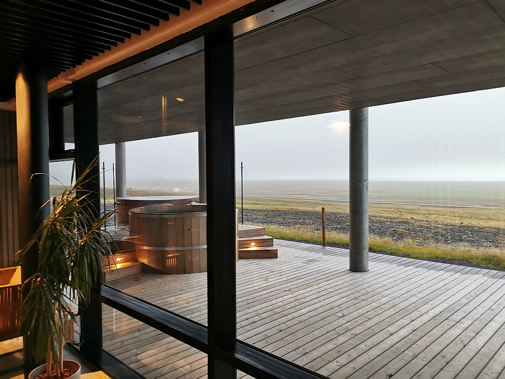 OK, der Spurhalte-Assistent, der hier und da in die Lenkung eingegriffen hat, war noch gewöhnungsbedürftig. Aber ohne Probleme kamen wir dann in unserem Hotel für die Nacht an: Dem Fosshotel Glacier Lagoon. Dieses hatten wir ausgesucht, da man hier Nordichter sehr gut sehen können soll. Wenn denn der Himmel klar ist. Was er nicht war.