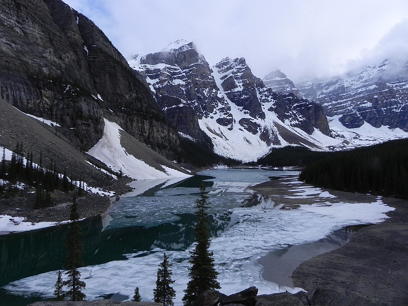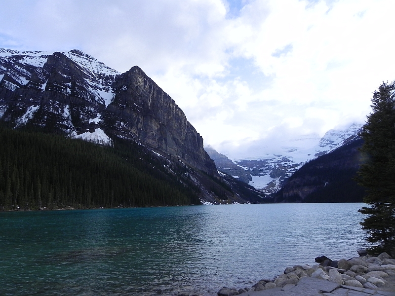 Da wir das schöne Wetter doch noch etwas ausnutzen wollten, haben wir uns spontan entschlossen, zum Lake Louise und Lake Moraine zu fahren. Und es war eine gute Wahl, denn das Wetter dort war merklich besser als heute morgen oder gestern.