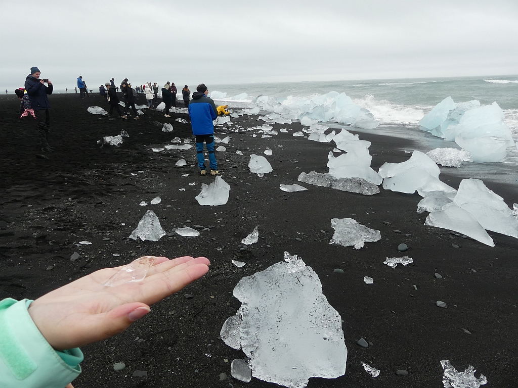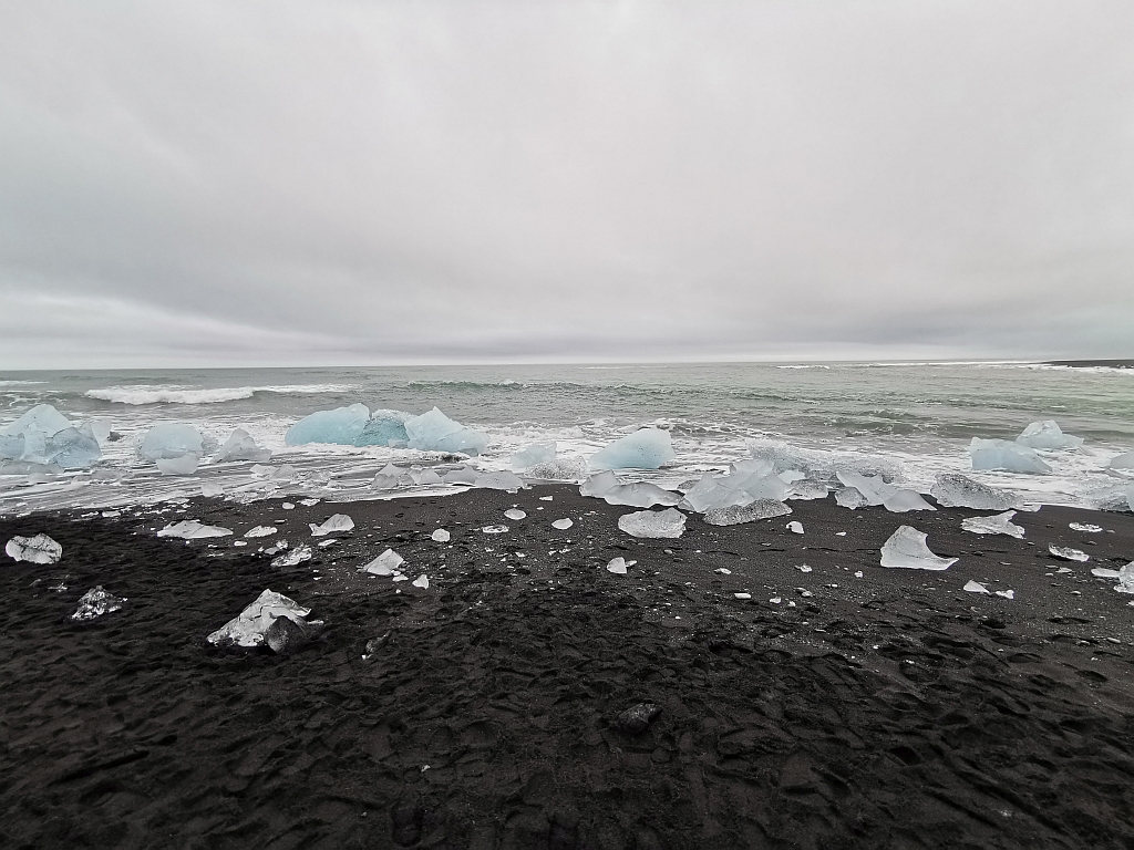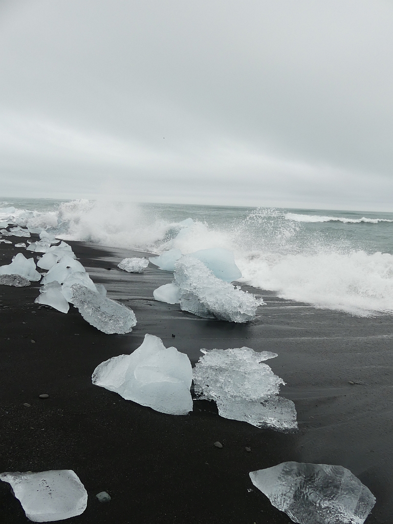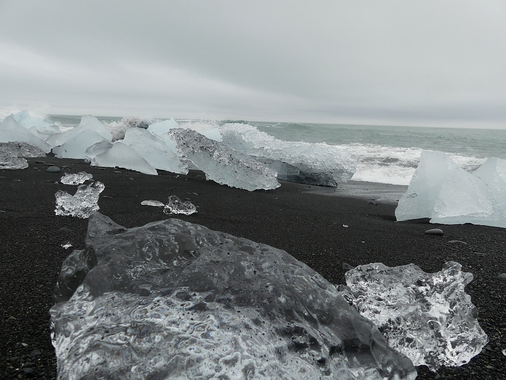 Warum der Name? Die Eisberge zerbrechen hier relativ oft unter den Wellen so werden kleinere Eisstücke an den schwarzen Stand gespült. Und die sehen tatsächlich wie Diamanten aus.