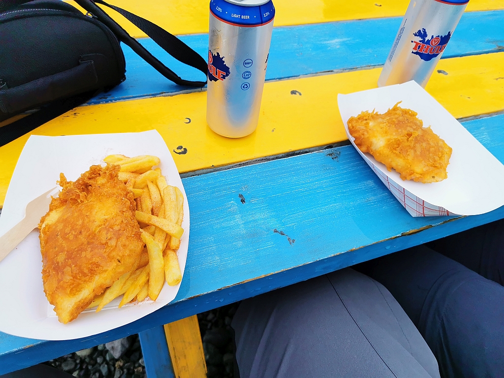Gute Idee, denn einerseits gab es alkoholarmes Bier (leider auch arm an Geschmack) und andererseits hat sich der Chippie bei seinen Fischen verzählt und wir bekamen ein Extra-Fisch umsonst dazu.