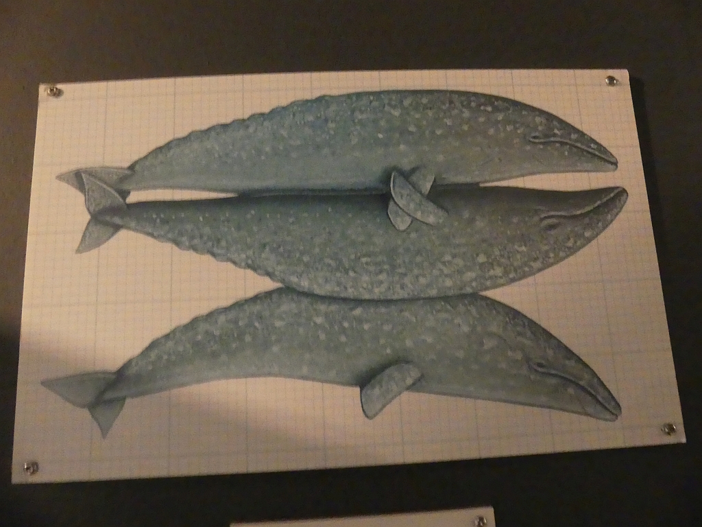 Daneben gab es auch, wenn man zum Beispiel schneller durch die Ausstellung gegangen ist als die andere, ein Raum in dem Dokumentationen über Wale gezeigt wurden.
