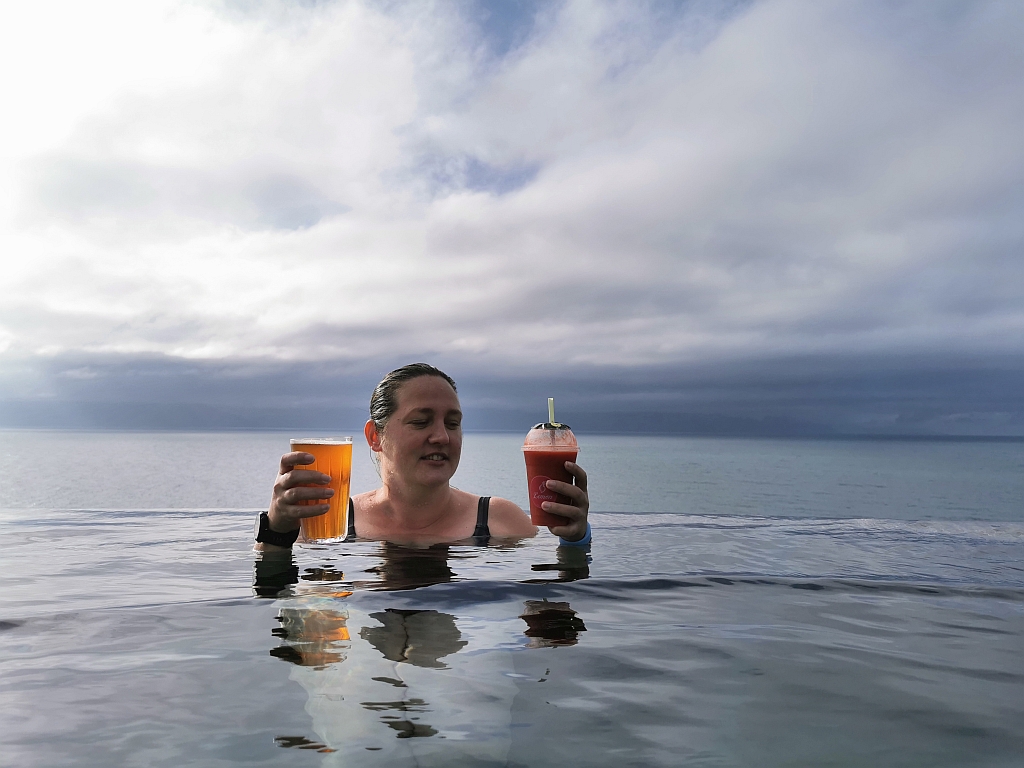 Wir folgten unserem Pattern mit Getränken im Wasser. Wobei Meike sich dankenswerterweise wieder bereit erklärt hat die Rückfahrt zu übernehmen und daher einen leckeren Smoothie bekam. Jens dagegen ein Pale Ale von Husavik Öl.