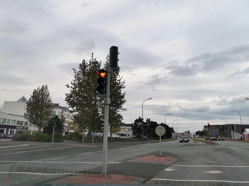 Sicher und ohne Probleme kamen wir dann aber in Akureyri an, um dort eines der „Highlights“ der Stadt zu sehen: Die Ampeln, speziell die roten. Die sind nämlich nicht einfach ein Punkt, sondern ein Herz.
