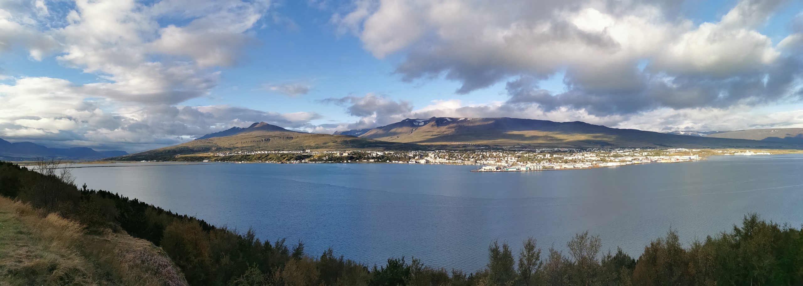 Nachdem wir uns von diesem schönen Blick losreißen konnten, ging es die 60 Minuten in Richtung Norden in den schönen Ort Husavik. Da wir auch dieses Mal nicht wieder durch den (kostenpflichtigen) Tunnel der Ringstraße fahren wollten, ging es um den Berg herum auf der Straße Nummer 83. Inklusive schönem Blick auf Akureyri.