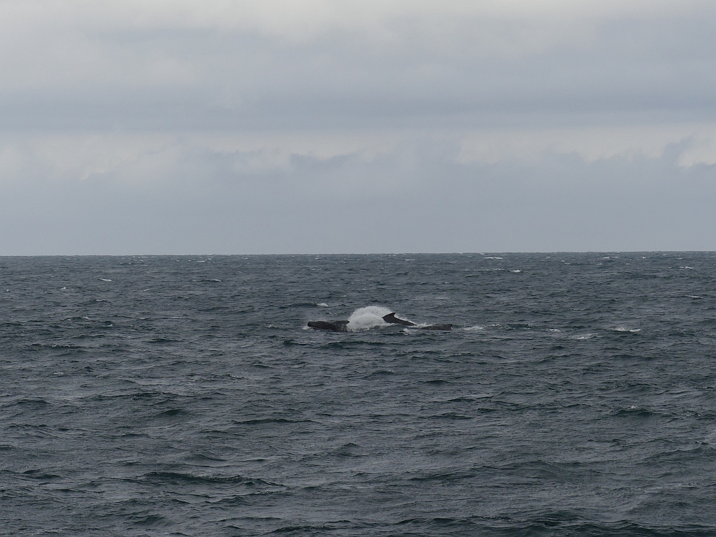Gesehen haben wir ihn auch, nur auf ein Foto konnten wir ihn nicht festhalten, denn kurz nachdem wir uns langsam in die Richtung des Wals aufgemacht hatten, tauchte dieser ab und verschwand. Schade, denn Zwergwale sind schnelle Schwimmer, können wie Delfine vollständig aus dem Wasser springen und sind im Unterschied zu anderen Furchenwalen neugierig und nähern sich Schiffen.