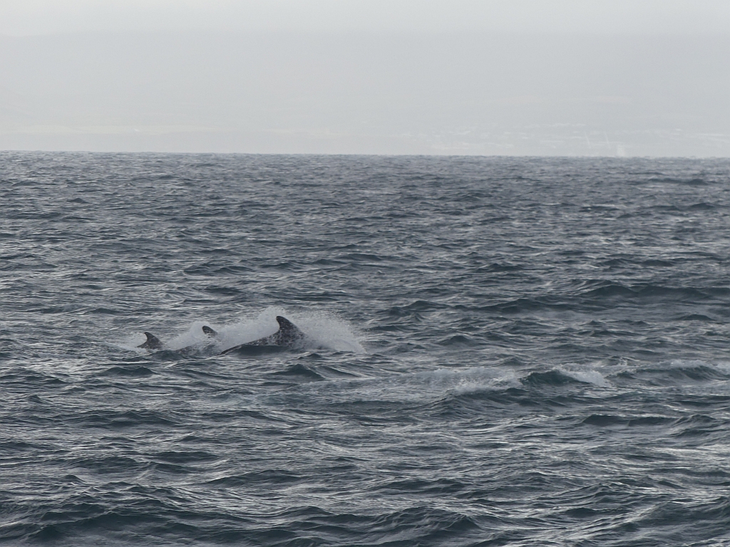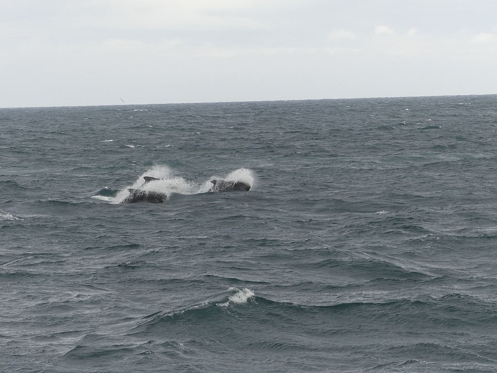 Aber war uns auch egal, denn für eine recht lange Strecke konnten wir die immer wieder aus dem Wasser springenden Grindwale beobachten. Was selten ist, denn man findet sie eigentlich sehr selten in Küsennähe.