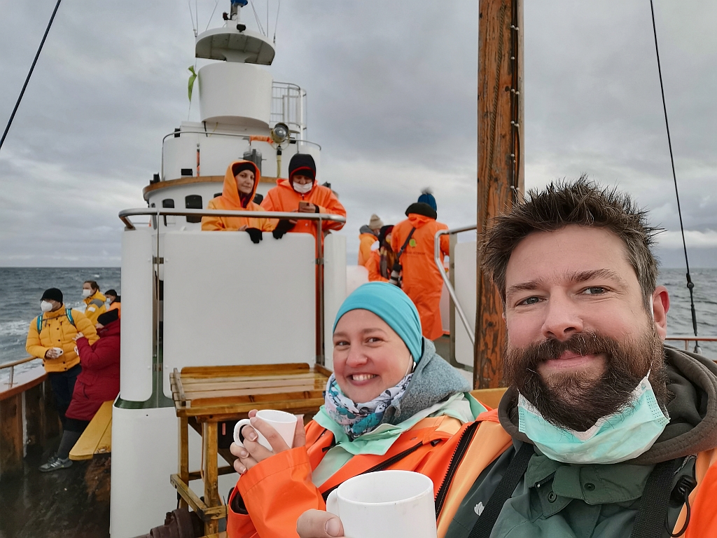 Hoch erfreut über die Tatsache am Ende doch noch ein Meeressäuger gesehen zu haben, eine warme Tasse in der Hand – ging gut gerade!
