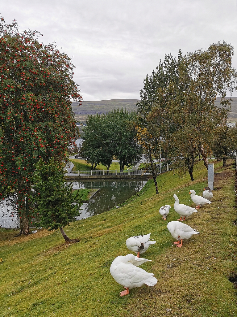 Der heutige Tag stand unter dem generellen Motto „Alles kann, nix muss!“. Wir hatten nichts geplant, außer dem Abendessen in einem bei Tripadvisor sehr hoch bewerteten Restaurant. Aber der Tisch war erst um 18 Uhr reserviert und bis da hin hatten wir noch genug Zeit. Also spazierten wir (am Ende knappe 18 Kilometer) durch Akureyri.