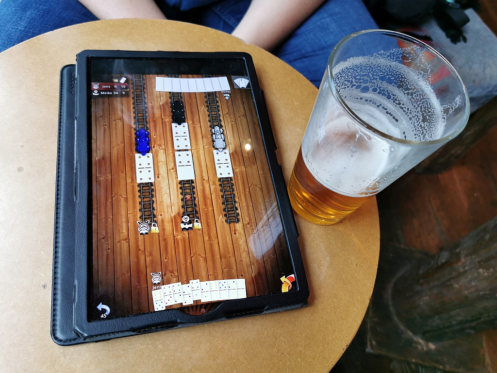 Ein Hostel gleich neben dem Cafe (das Akureyri Backpackers) hatte eine Bar mit einigen spannenden Bieren „On tap“. Und wir hatten was zur Unterhaltung dabei: Unser Tablet mit einer elektronischen Variante von Kniffel / Yatzi. Und nachdem Jens mehrere Partien da verloren hat, durchsuchten wir die anderen Spiele und probierten sie aus.