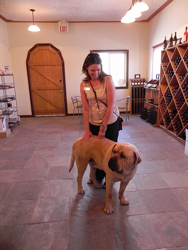 Highlight hier waren der 2009 Cabinet Franc (von dem eine Flasche im Gepäck ist) und Ali. Ali ist ein Mastiff mit einem Gemüt, das ungefähr soviel Kampfeslust ausstrahlt wie Ghandi. Und wenn er nicht gerade versucht seinen eigenen Schwanz zu fangen (ein Bild für die Götter, wenn ein 90 Kilo Hund sich um die eigene Achse dreht) lässt er sich von Cara (auf dem Foto) oder uns kraulen.