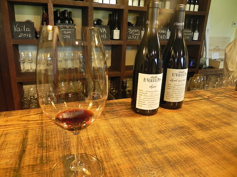 Hier haben wir (neben zwei total süßen „Wachhunden“, die schwanzwedelnd auf uns zugetappst kamen) mehrere gute Rotweinen getrunken. Empfehlenswert sind zum Beispiel ein wunderbarer 2010 Syrah und einen 2008 Obra-Prima, der gefühlte 100 Preise gewonnen hat.