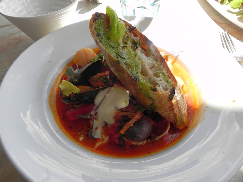 Ich hatte „West Coast Seafood Cioppino“ und Meike hatte ein Sandwich mit Salat. Beides hervorragend!