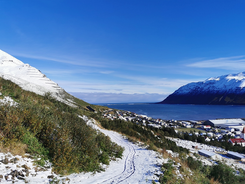 So entschieden wir uns über eine recht freie Rundwanderung um den Ort Siglufjörður. Also raus mit uns.