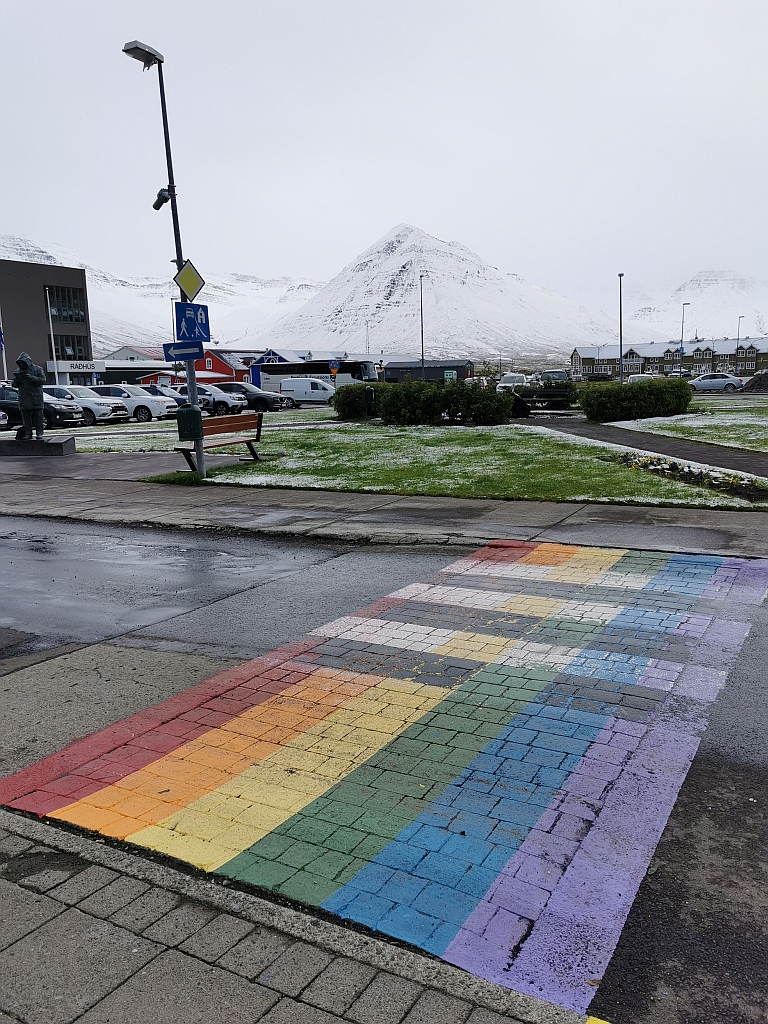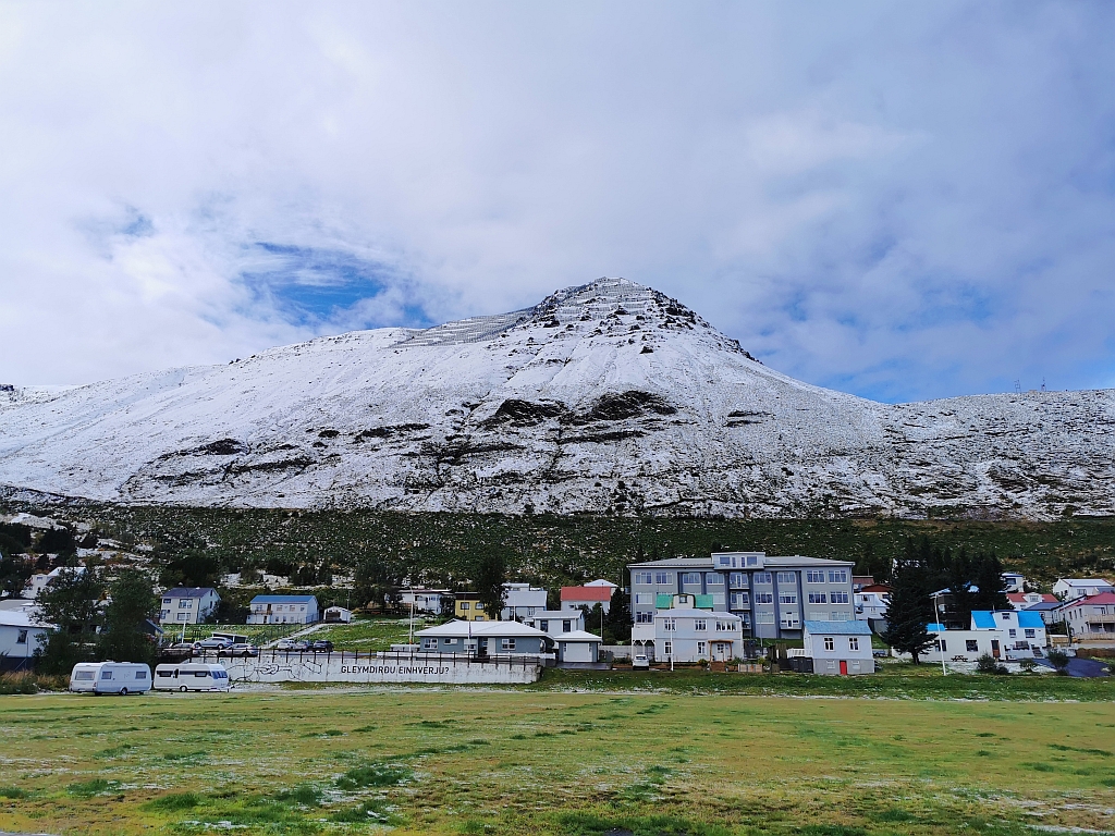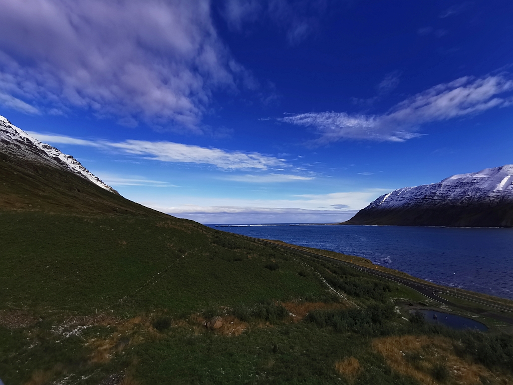 So gestärkt ging es ab zur Rezeption, wo wir die Dame nach Wanderwegen für diesen Sonnentag ausfragten. So richtig gab sie uns aber keine Auskunft, da die höheren Wege wohl nicht passierbar und der Weg aus dem Tal in Richtung des Tunnels Héðinsfjarðargöng war wohl auch keine gute Idee war. Außerdem sollte das Wetter zum Nachmittag hin immer schlechter werden.