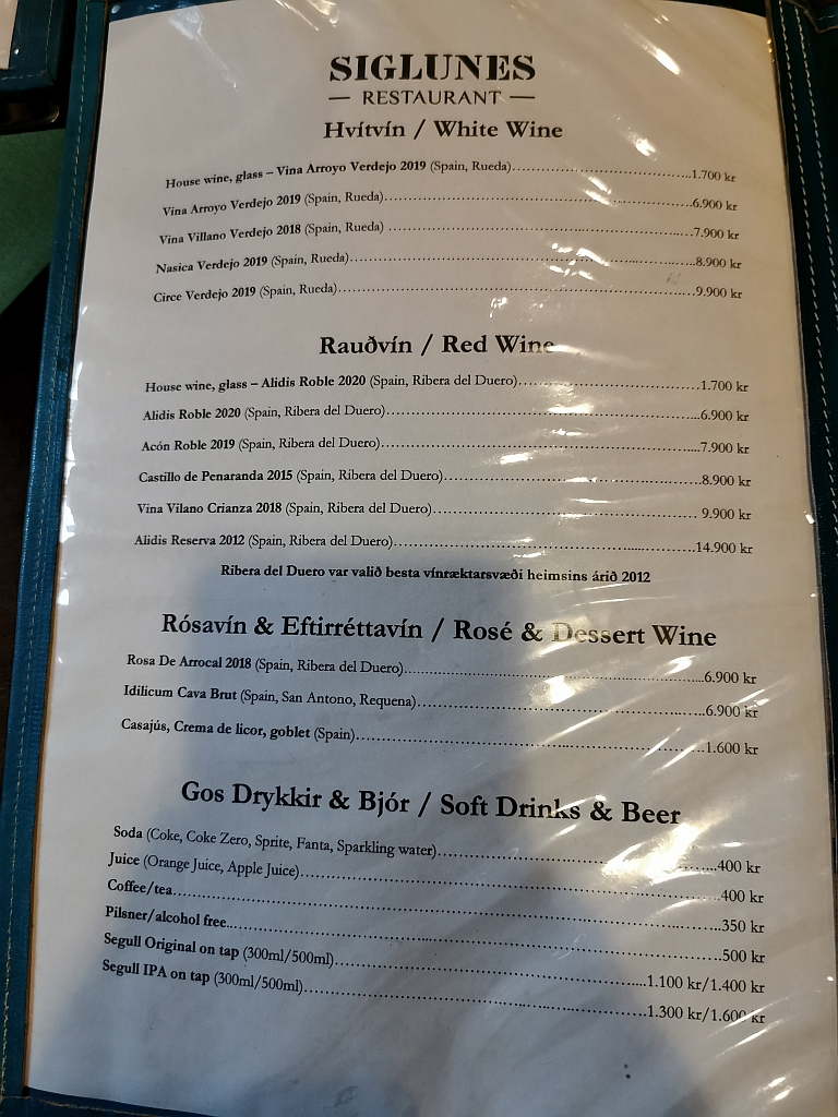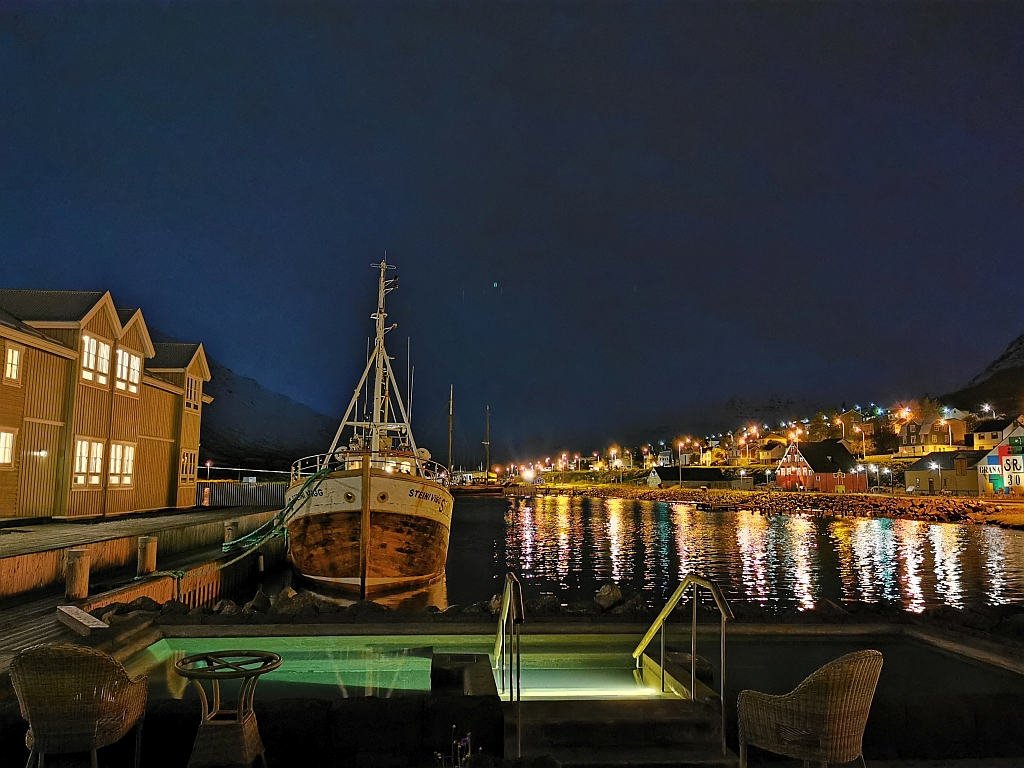 Im Vorfeld hatten wir uns ja, so sind wir nun einmal, etwas auf die Orte vorbereitet. Für Siglufjördur haben wir dabei, trotzdem das so ein kleiner Ort ist, mehrere Restaurant-Ideen vorbereitet. Am Abend zuvor beim Check-In hatten wir uns für das Siglunes Restaurant mitten im Ort entschieden und dort einen Tisch reserviert. Genauer gesagt den letzten freien Tisch. Was, als wir im Restaurant ankamen, jetzt irgendwie merkwürdig war.