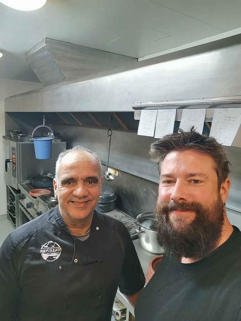 Die Auflösung ist: Der Inhaber des Hotels hier, Hálfdán Sveinsson, hat vor vielen Jahren mal Urlaub in Marokko gemacht. Und war von dem Essen, das er in einem Restaurant dort hatte (mehrfach), so begeistert, dass er den Koch dort tatsächlich dazu gebracht hat nach Island zu kommen. Und hat ihn dann einfach im Restaurant angestellt, wo er seitdem arbeitet und die Küche seiner Heimat zelebriert.