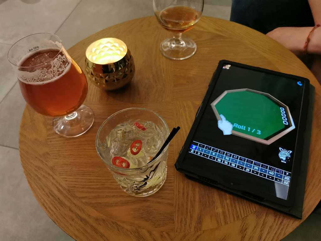 Und der Abend endete in der Hotelbar. Denn gestern Abend hatten wir den Barkeeper nach lokalem Craftbieren gefragt haben und er musste uns antworten, dass er nur 2 relativ normale hat. Er meinte aber, dass er versuchen würde, etwas zu organisieren. Und das bekam er hin, denn für uns gab es (neben der üblichen Abreibung, die Meike Jens beim Yatzi erteilte) ein leckeres Pale Ale, was er aus der aktuell geschlossenen Brauerei organisiert hat.