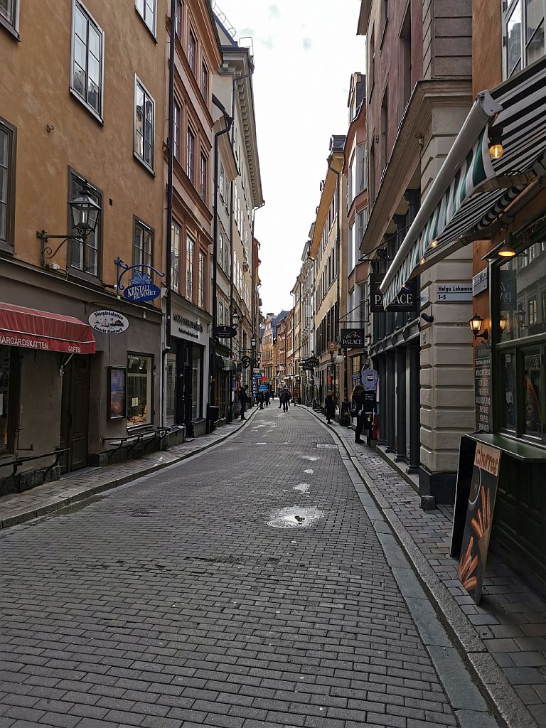 Quasi schräg gegenüber ging es dann in die Storkyrkobrinken, eine der Einkaufsstraßen der Altstadt. Auch hier wieder wunderbar erhaltene Gebäude links und rechts. Auch wenn es meistens nur die üblichen Touristenfallen und Kioske waren.