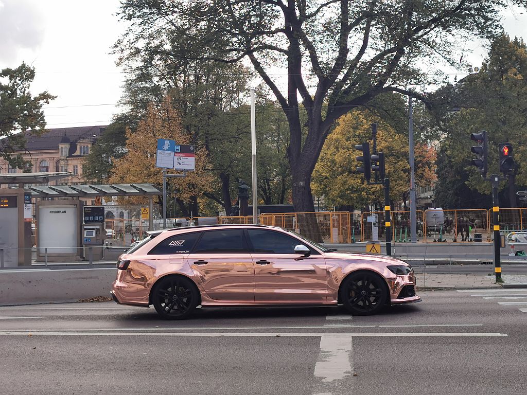 Warum man sein Auto so wie ein Kupferkessel anmalen muss, keine Ahnung. Immerhin fuhr der Fahrer gesittet und hielt auch fast noch vor dem Haltestrich an der Ampel an …