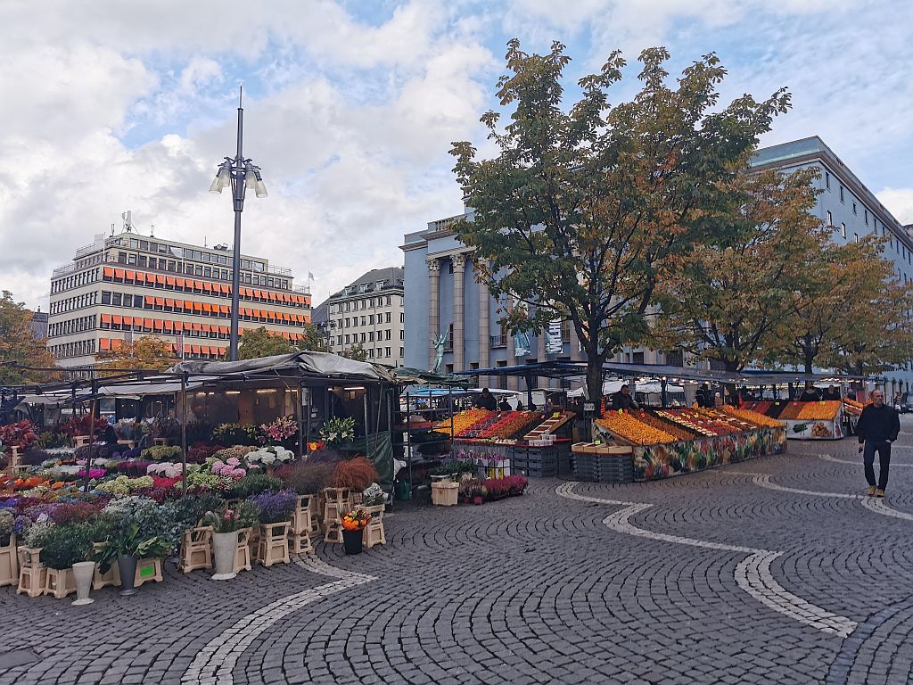 Unsere Tour neigte sich jetzt langsam ihrem Ende entgegen. Nachdem wir ein paar kleinere Umwege gegangen waren, kamen wir am Heumarkt, Hötorget genannt, raus. Hier gibt es seit dem 17. Jahrhundert Märkte, wobei es heute eher Gemüse, Blumen und Kleidung ist.