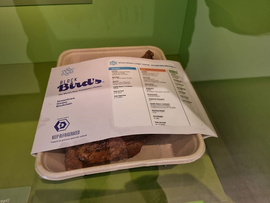 Auch in Erinnerung geblieben: Das transparente Hühnchen. Das ganze ist ein Pilotprojekt von Walmart und IBM in den USA – für jedes Hühnchen wird dabei aufgelistet, welche Medikamente es Zeit seines Lebens erhalten hat, wann es verletzt wurde und von wo nach wo es transportiert wurde.