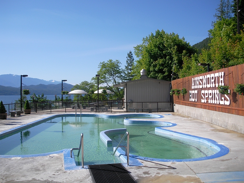 Wir haben gerade 9:47 Uhr morgens in Ainsworth Hot Springs und wir kommen gerade aus den heissen Quellen. Eine bessere Art den Tag zu starten, ist schwer denkbar: Vom Hotelzimmer kommt man direkt zum Eingang der Springs, bekommt dort ein frisches Handtuch und rein geht es in die Quellen, die wunderschön am See liegen: