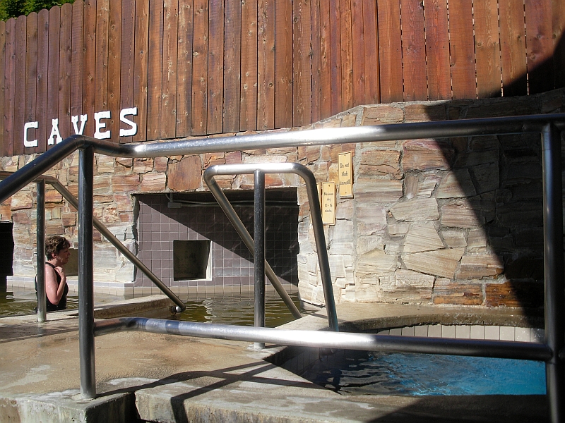Neben dem hier zu sehenden, heißen (37° C) Becken gibt es noch ein kaltes Becken (das wir mit Missachtung gestraft haben) und die „Caves“: