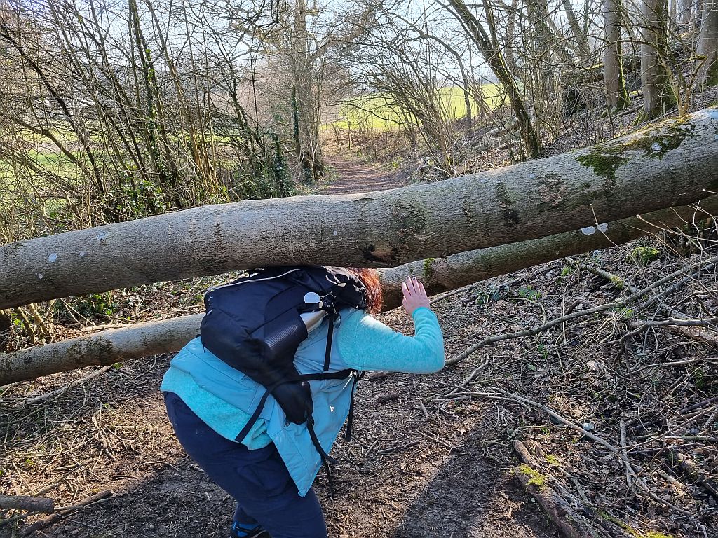 Für uns ging es dann über kleine Brücken und unter ein paar umgestürzten Bäumen durch. Und gegen den immer noch leicht hämmernden Kopf wegen den Getränken am letzten Abend.