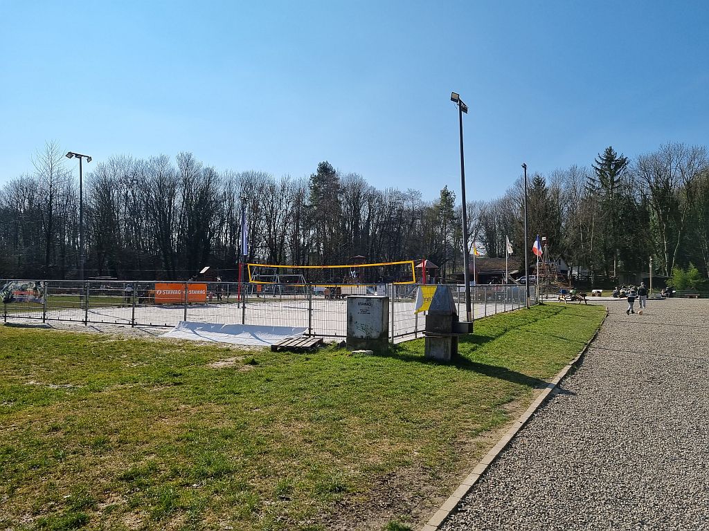 So etwa auf der Hälfte der Strecke dann auf einmal Lärm und viele Menschen: Ein kleiner Park mit Beach-Volleyball, einem (leider geschlossenen) Kiosk und vielen Familien mit kleinen Kindern. Schnell weg …