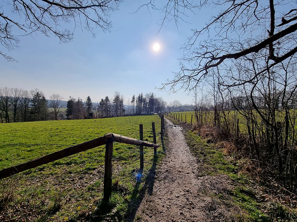 Hier verläuft die Vennbahn, eine ehemalige Eisenbahnstrecke zwischen Aachen und Ulflingen in Luxemburg. Zuerst noch auf deutschem Staatsgebiet wechselte die Trasse im Laufe der Jahrzehnte häufig die Nationalität. 1998 wollte die belgische Staatsbahn SNCB noch eine Museumsbahn hier betreiben, 2004 war dann aber endgültig Schluss mit dem Bahnverkehr und die Strecke wurde entwidmet.