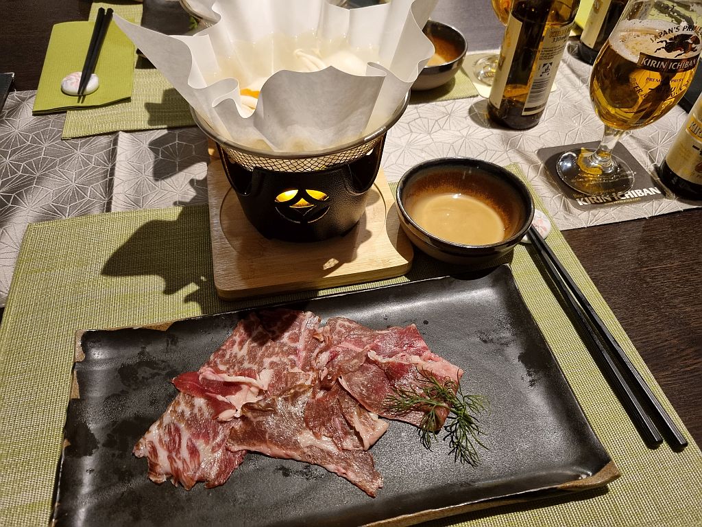 Dann folgte Shabu-Shabu mit sehr schön fettigem Fleisch und einem wunderbaren Sesam-Dip!