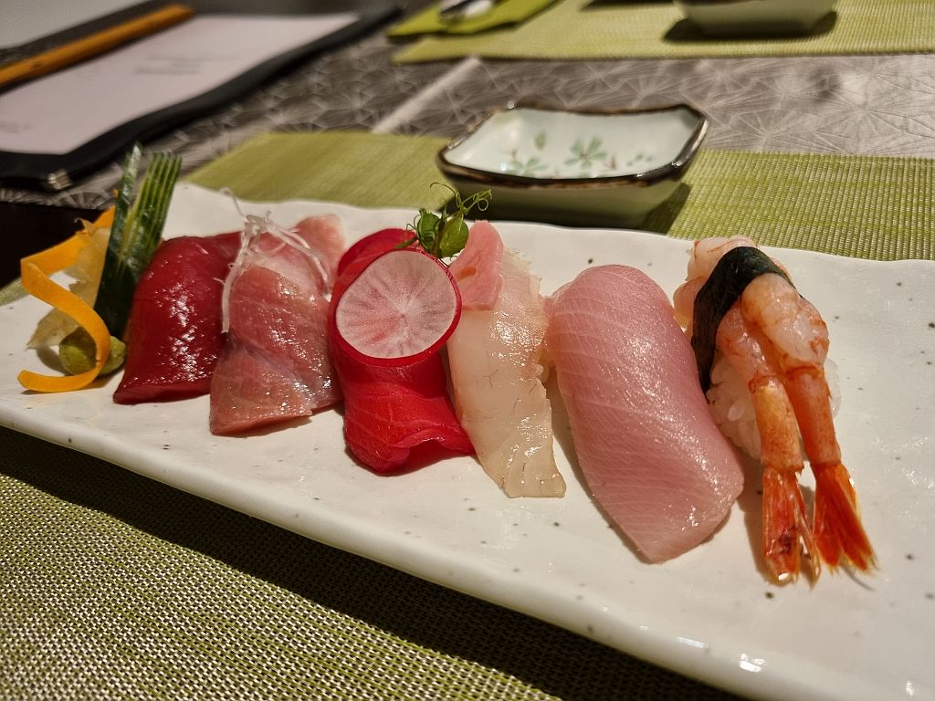 Und zu guter letzt Sushi. Hier war gerade der Maguro, also der etwas hellere Thunfisch, sowie die kleinen und butterzarten Garnelen unsere Highlights.