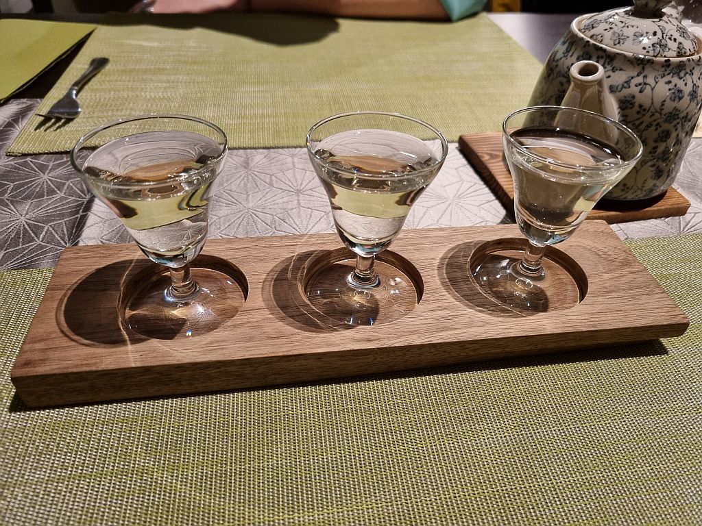 Um das dann aufkommende Fernweh nach Japan zu betäuben: Ein Sake Tasting zum Abschluss. Wer kann, der kann!
