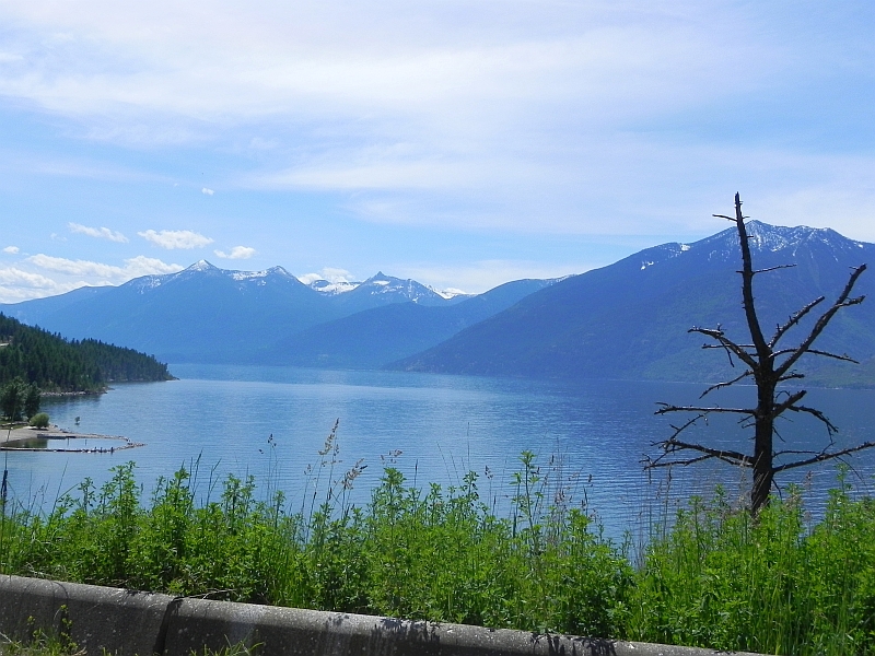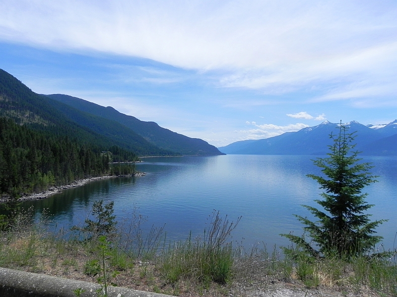 Auf der anderen Seite angekommen, sind wir auf den dort beginnenden Highway 3A gefahren, der uns am See entlang nach Creston führte, wo wir wieder auf den Crowsnest Highway angekommen sind, der uns nach Cranbrook geführt hat. Auch diese Fahrt war wunderschön, die am Lake gelegene Strasse windet sich am Wasser entlang und man hat einen grandiosen Blick auf die Grundstücke. Die gar nicht so teuer sind … 😉