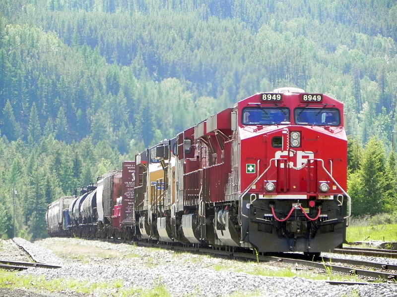 Nach einer Weile kamen wir dann wieder auf den Highway 3 oder auch Crowsnest Highway. Und da waren auch die ersten Vorboten von Cranbrook zu sehen, denn Cranbrook ist ein eisenbahntechnischer Knotenpunkt hier in der Gegend und beherbergt auch das Canadian Museum of Rail Travel. Wir trafen also auch Züge entlang des Weges …
