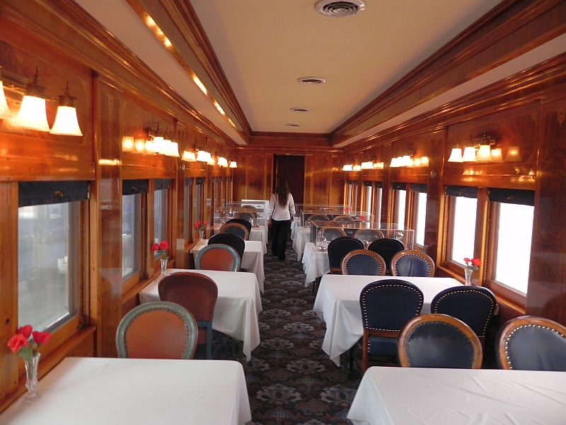 Die Guides selber haben recht wenig Ahnung von dem, was da steht. Ich meine, es ist schon beeindruckend, die alten Waggons zu sehen und in welchem Luxus die Leute damals (1920 – 1950) gereist sind. Die Mahagoni-Täfelungen und die dort eingebrachten Schnitzereien waren schon schön restauriert und man konnte erahnen, was für eine Pracht damals diese transkontinentalen Luxuszüge waren.