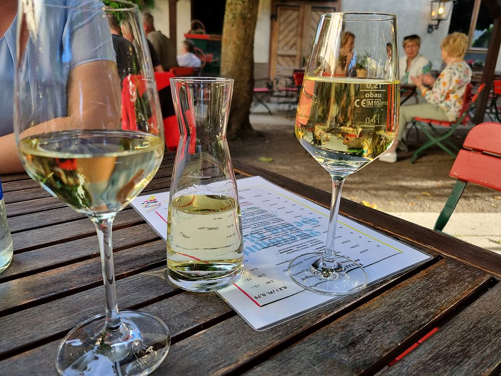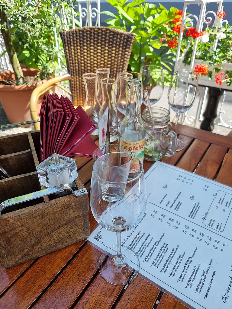 Weil wir nach dem Essen allerdings noch … unternehmungslustig waren, sind wir tatsächlich noch einmal raus und quasi „um die Ecke“ gegangen. Dort hatten wir nämlich bei einem der letzten Besuche eine kleine Weinwirtschaft entdeckt, die verlockend aussah. Und da wollten wir einfach nur mal so vorbei gehen … berühmte letzte Worte!