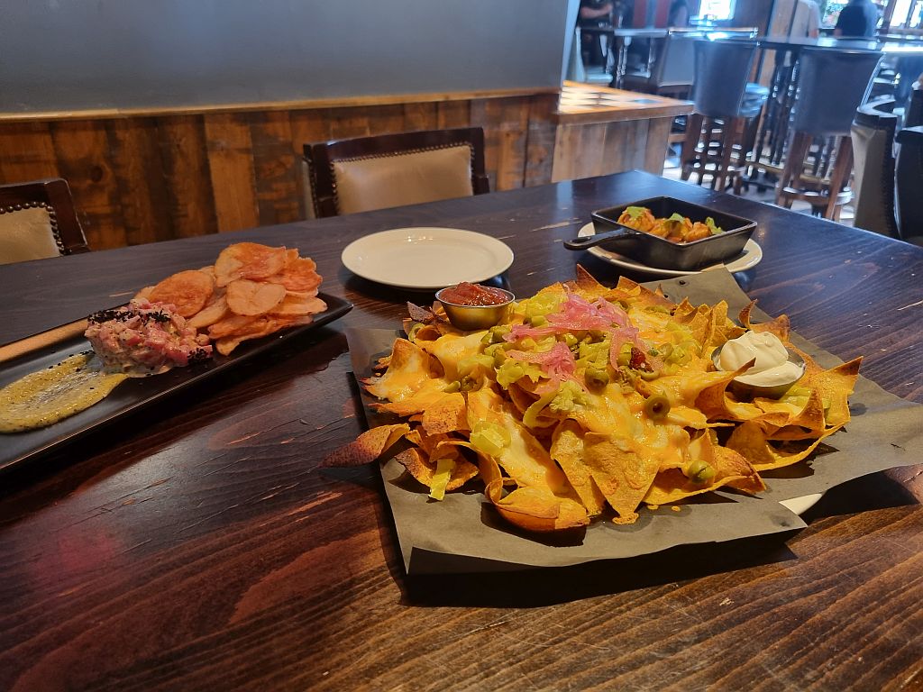 Wir entschieden uns für Thunfisch-Tartar, Nachos und Garnelen in Kokossoße. Von den Dimensionen her sehr unterschiedlich …