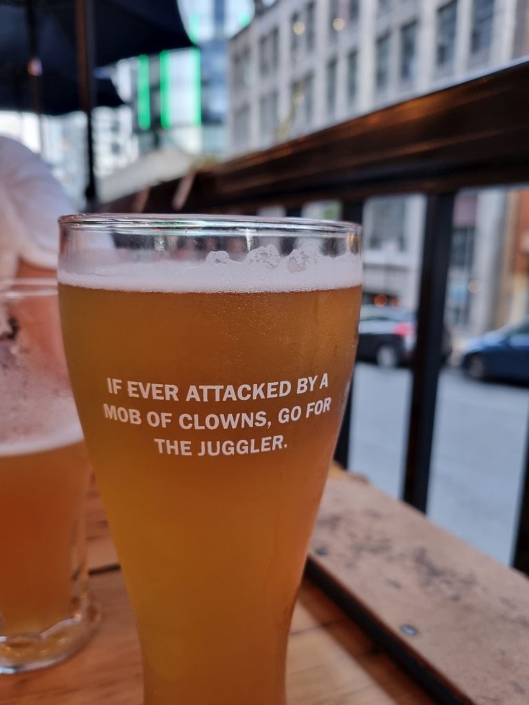 Mit einem guten Humor. Beziehungsweise Bieren einer Brauerei mit einem guten Humor.
