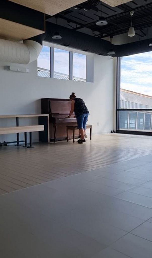 Im Woodside Fährterminal genossen wir dann erst einmal die Klimaanlage und den Schatten. Und Meike das bereitstehende Klavier.