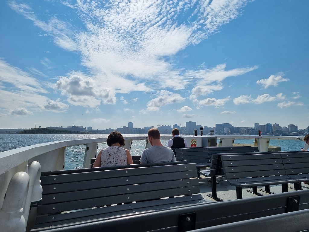 Gestern in der Touristeninformation haben wir ja den Tipp bekommen, dass Freitags alle Fähren gratis sind. Also dachten wir uns, nachdem wir von Georges Island zurück gekommen waren: Das nutzen wir mal aus. Also rein in den Halifax Ferry Terminal, welcher gleich neben unserem Fähranlieger liegt.