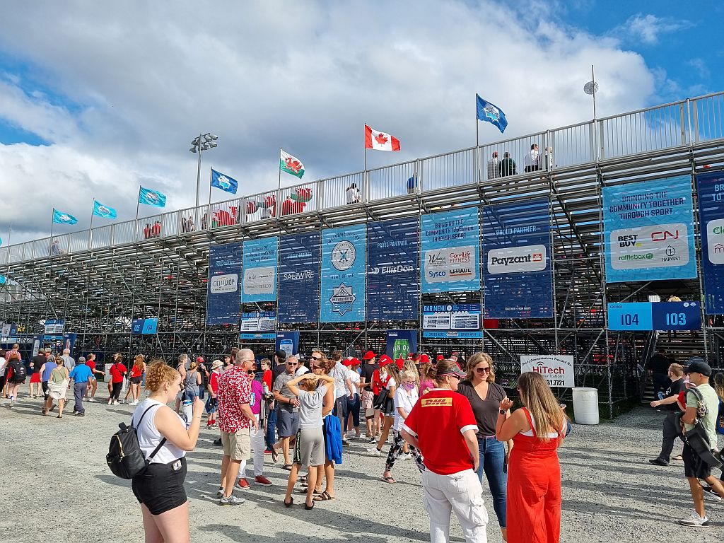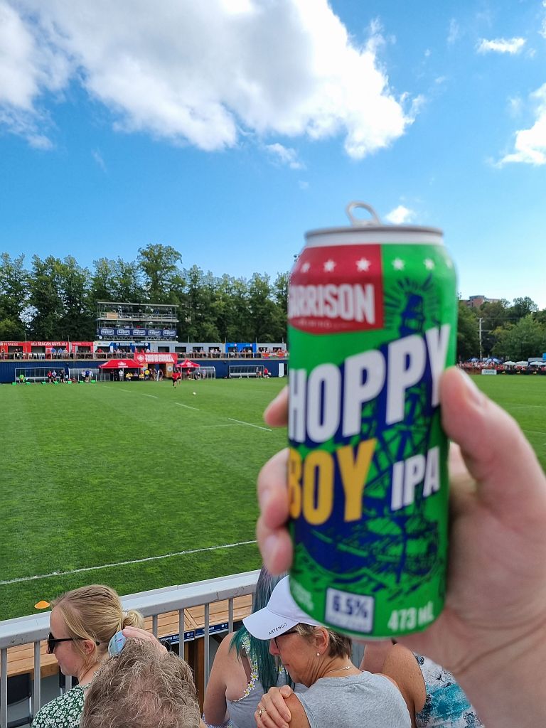 Nur der Weg dorthin war nicht … normal. Als wir nämlich aus dem Taproom rausgingen, sah Jens in einem Biergarten nebenan ein paar Menschen in kanadischen Rugby-Trikots. Also sind wir kurz hingegangen, um zu fragen, ob es vor Ort einen Ticketschalter gibt. Wussten die Leute jetzt auch nicht so genau, meinten aber „Ach, bleibt hier kurz sitzen, trinkt noch ein Bier mit uns und wir gehen dann zusammen hin!“.
