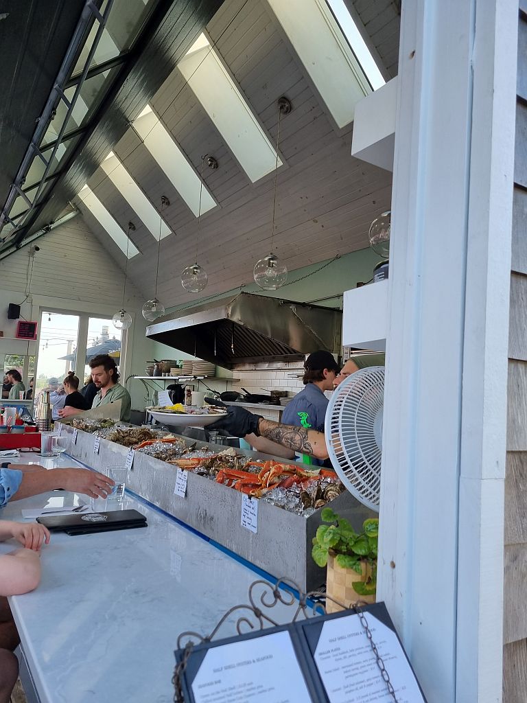 Die Half Shell Oyster Bar hat eine recht übersichtliche Karte und eine ebenfalls übersichtliche Auswahl an Tischen.