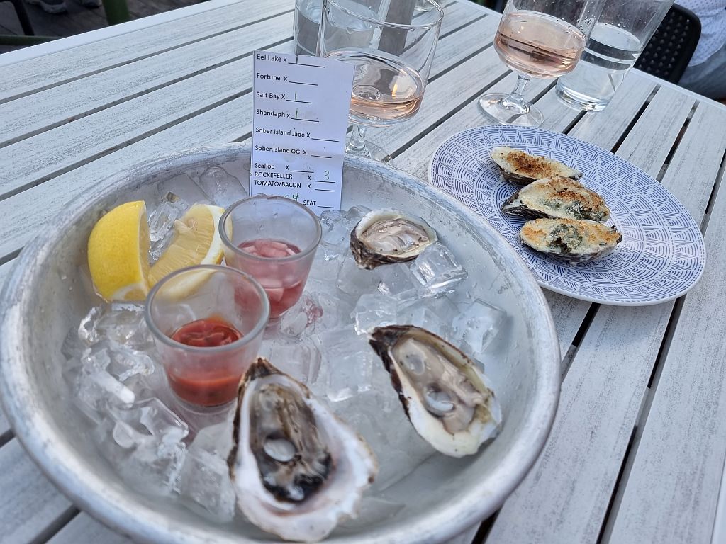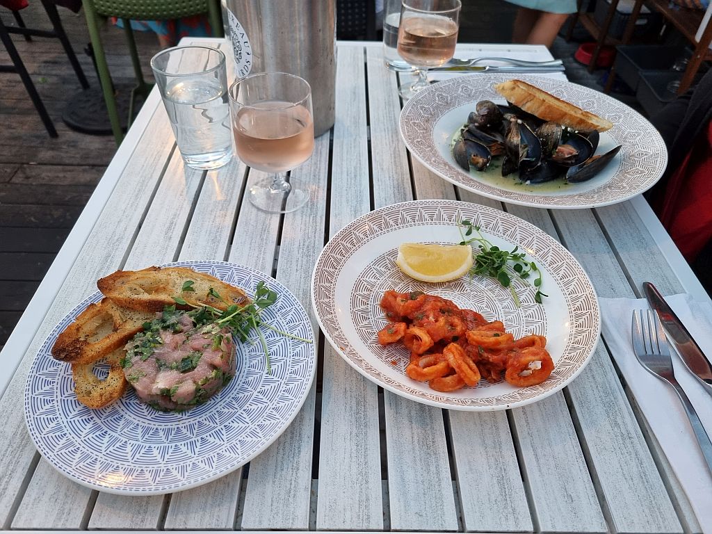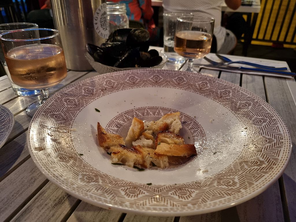 Dazu ein schönen Rosé und – meine Güte war das Essen gut! Die Austern sehr kräftig, jod-haltig und frisch. Die überbackenen Austern schön gewürzt mit vielen Kräutern.
