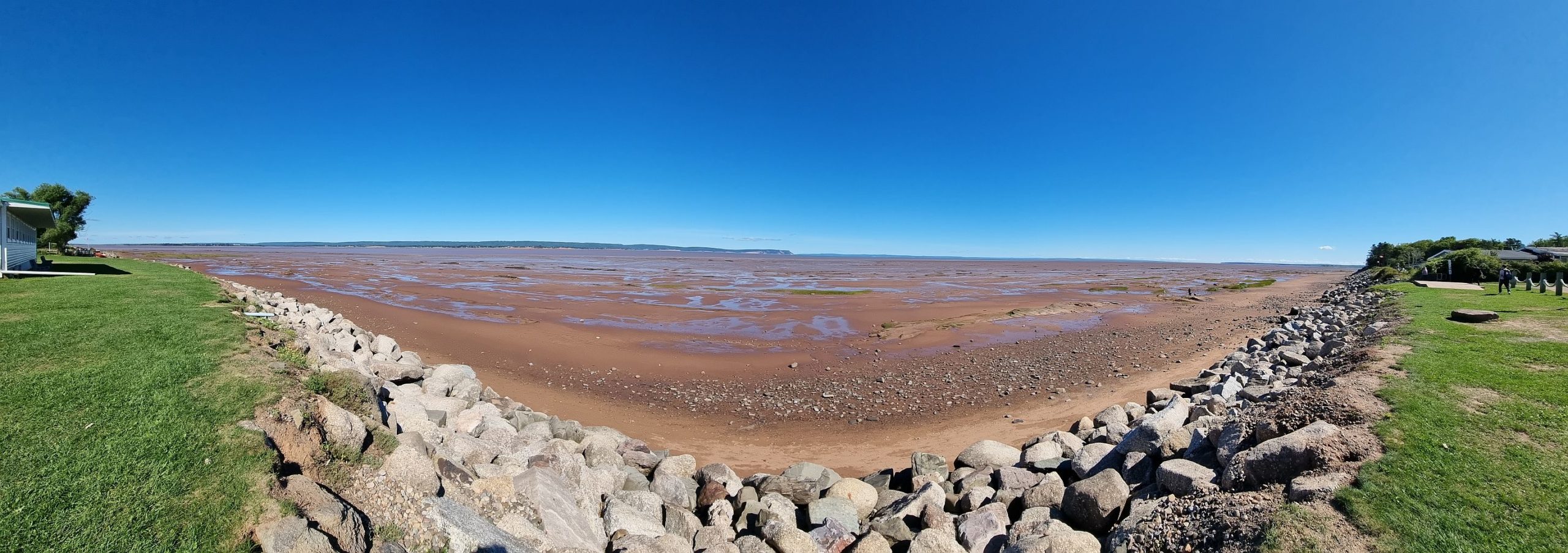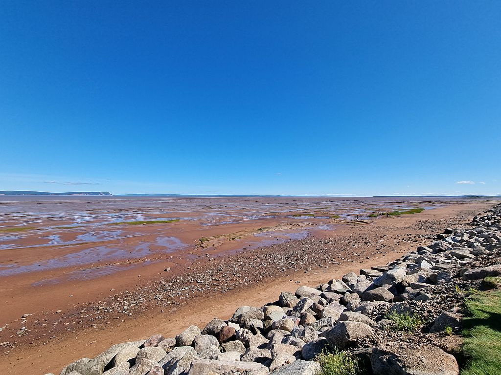 Allerdings wollten wir nicht zu spät zur Weintour kommen. Vorher aber noch, wenn man schon quasi da ist, ein Blick auf die Bay of Fundy. Welche … recht leer war.